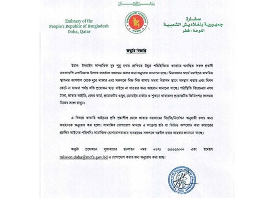 ইরাকে অবস্থানরত সব প্রবাসী বাংলাদেশি নাগরিককে বিশেষ সতর্কতা অবলম্বনের জন্য অনুরোধ জানিয়েছে বাংলাদেশ দূতাবাস। শনিবার (২৮ ফেব্রুয়ারি) এক জরুরি বিজ্ঞপ্তিতে…