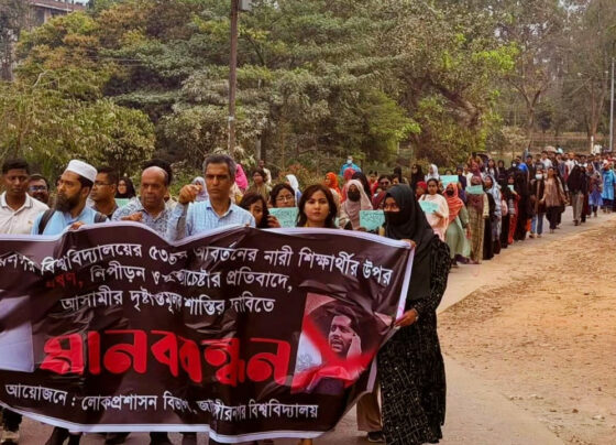 জাহাঙ্গীরনগর বিশ্ববিদ্যালয়ের (জাবি) ৫৩তম আবর্তনের এক ছাত্রীকে ধর্ষণ ও নির্যাতনে অভিযুক্ত তারিকুল ইসলামের দৃষ্টান্তমূলক শাস্তির দাবিতে মানববন্ধন ও মৌন মিছিল…